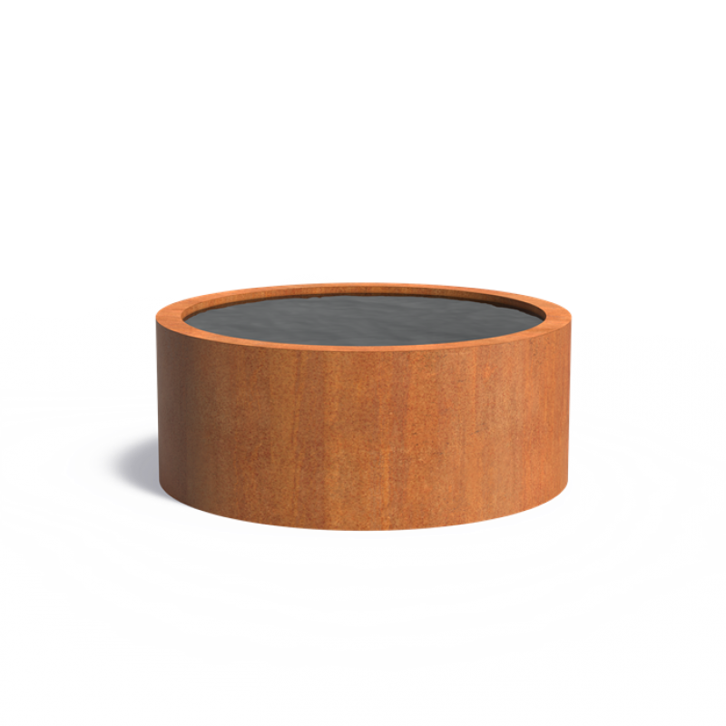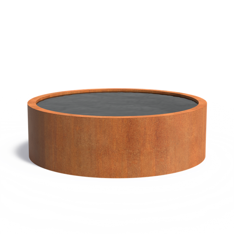 Die Teiche sind aus hochwertigem Corten-Stahl gefertigt, einem selbstschützenden Material, das witterungsbeständig, korrosionsbeständig und langlebig ist und keine besondere Pflege erfordert. Ihre Oberfläche bildet nach und nach eine Patina, die jedes Stück zu einem Unikat macht.