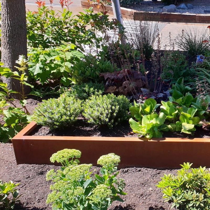 Our retaining walls are made from CorTen steel. An ideal material for outdoor use. Renowned for its strength and durability, it is also widely used for its maintenance-free, weather-resistant properties!